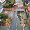 Global markets fell after stiff U.S. tariffs went into effect at midnight, and China and Canada immediately imposed retaliatory measures. Mexico said it would announce its response on Sunday.